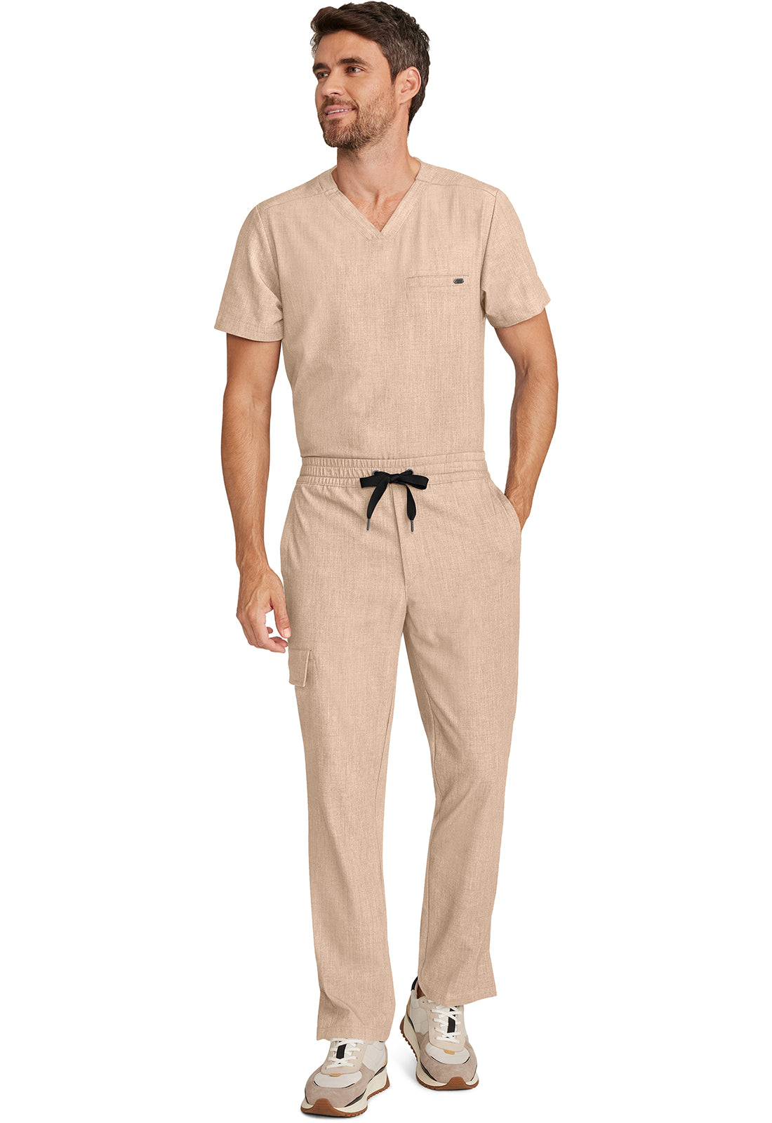 The Angelo mid rise pant features an elasticized waistband, webbed drawstring, and zipper fly. There are four pockets for organized storage: two front pockets, one flap cargo pocket on the wearer's right side, and one back welt pocket. Flap cargo pocket converts to a welt pocket for easy entry. Printed pocket bags for added detailing. Curved back yoke for a better fit across the hips adds a refined touch to the modern fit, making the Angelo a polished choice for work and beyond.