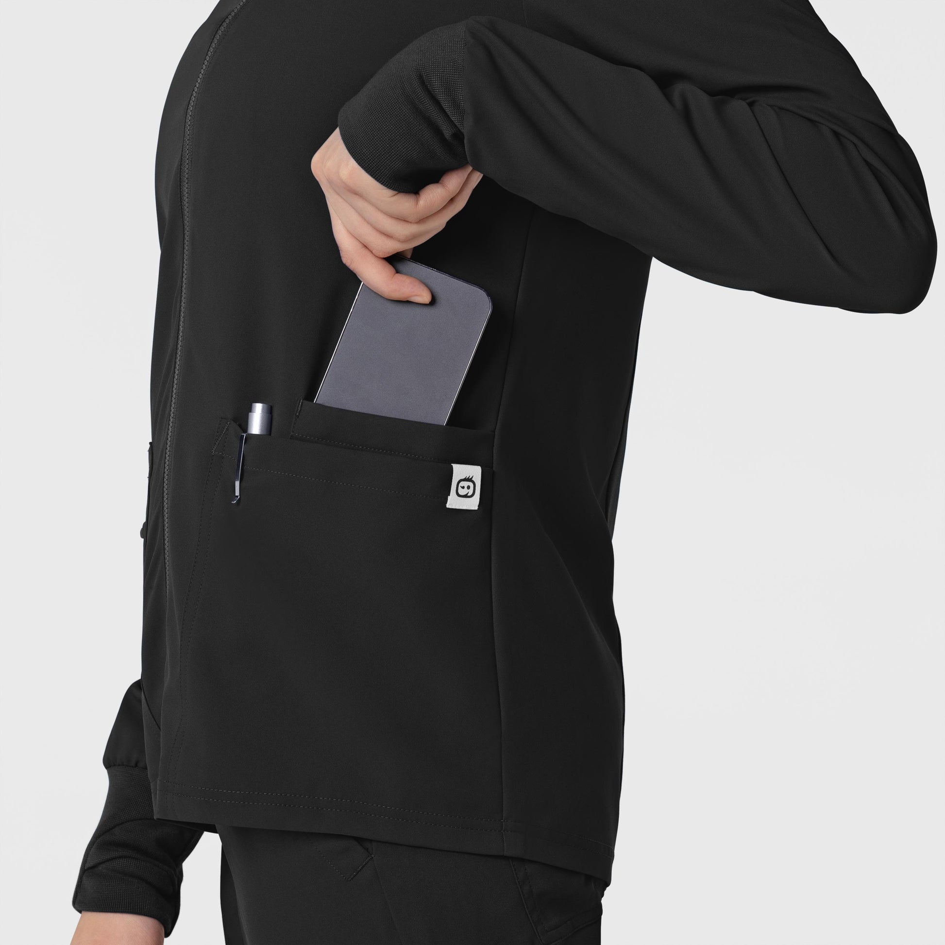Wink THRIVE is our most sustainable collection, designed to give you the peace of mind. This jacket is made with four-way stretch fabric for an athletic look and feel. Since lifting and leaning are all in a day's work, our Flex-n-Reach panels stretch with you to help you handle everything the shift throws your way. A knit back panel gives you extra flexibility. Thumbholes at the cuffs keep hands warm and sleeves in place.